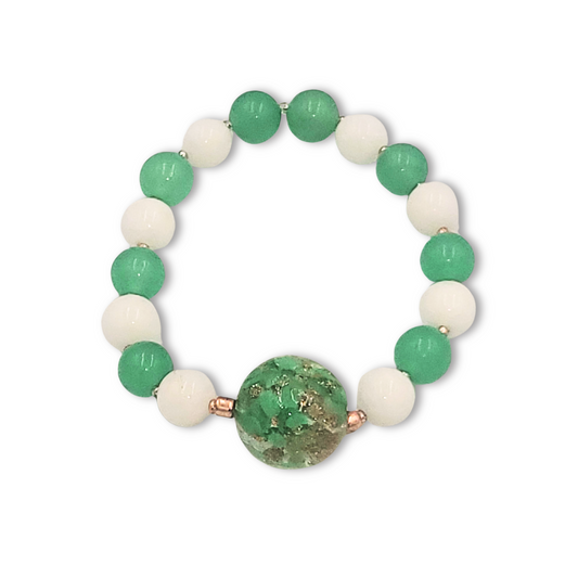 Luck & Style- Green and White Stone of Opportunity Bracelet